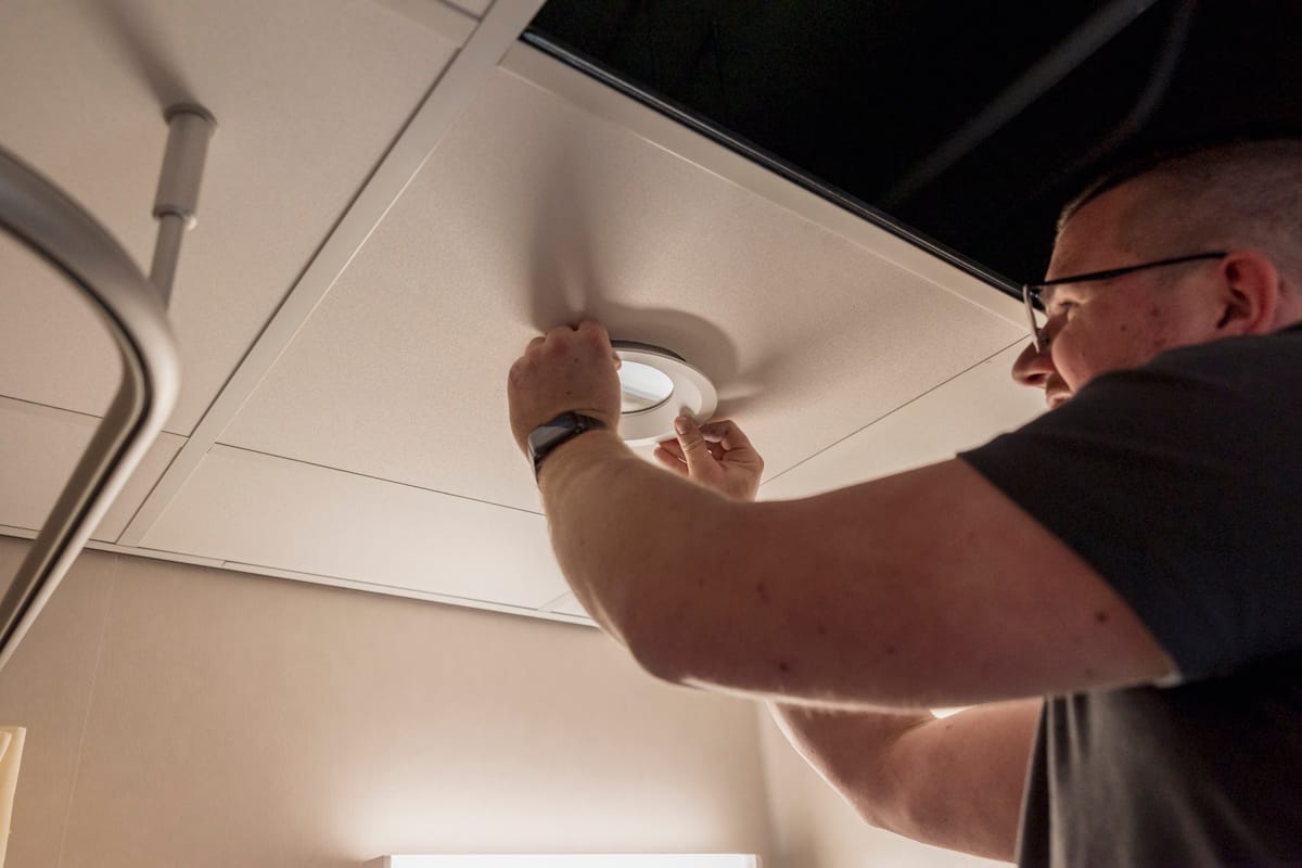 We prefer to install our fixtures ourselves. This allows us to guarantee a fast and accurate result. We handle the scheduling, remain flexible, and ensure minimal disruption. For instance, we can install a complete lighting system in a treatment room within just 2 hours.