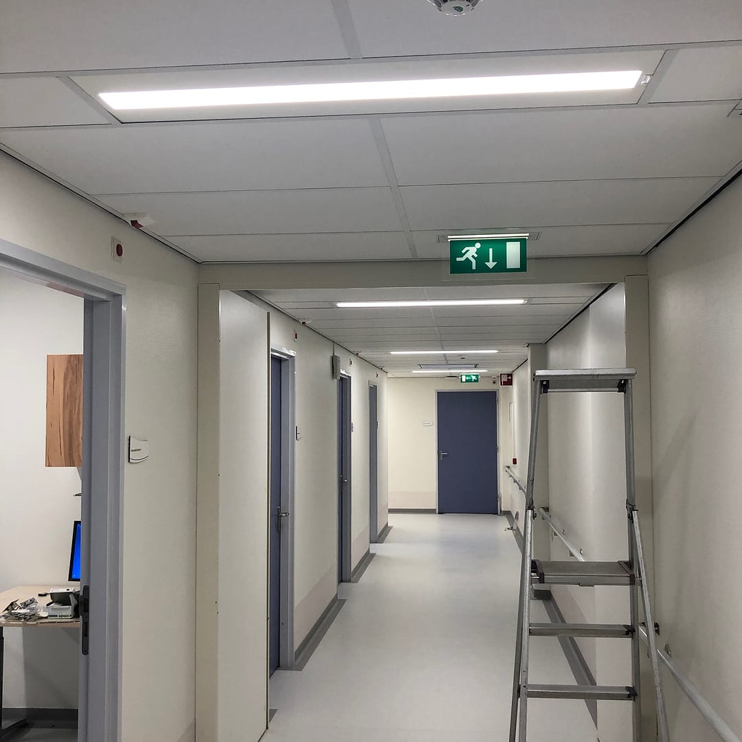 The L12 luminaires are standard recessed fixtures for suspended ceilings. The metal housings are robust and durable. The special prismatic plastic light panels ensure low brightness in the visible area. Equipped with Philips Fortimo LED boards, the power settings can be adjusted, ensuring that the amount of light is never an issue.