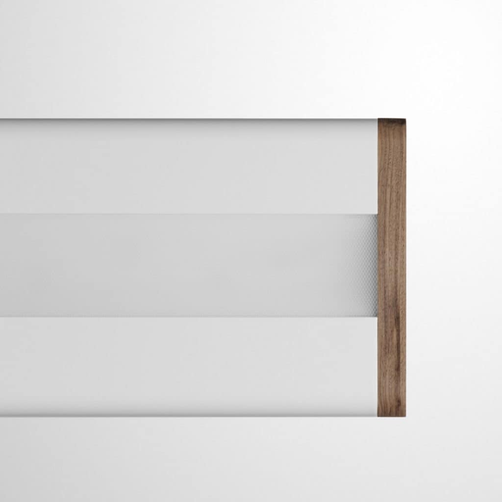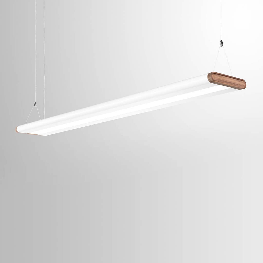 The fixture consists of two meticulously designed extrusion profiles with a sleek curve. These are connected by stainless steel connectors. The aluminum folded plates provide sealing for the top and bottom and also serve as LED holders. The drivers are integrated into the curve of the extrusion profiles. Everything fits with precision to the tenth of a millimeter. The elegant, clean lines combined with the wooden finish make it a stunning eye-catcher in any space.