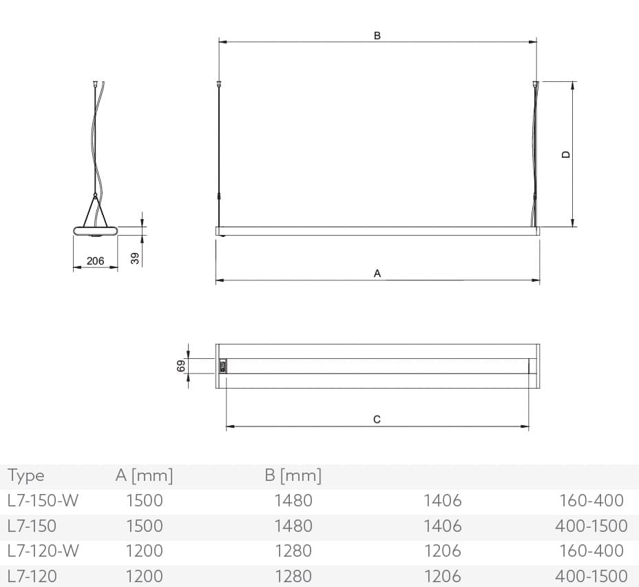 The L7 features both direct and indirect lighting: 70% indirect and 30% direct, but this can also be adjusted variably. A truly unique lighting experience. The indirect LEDs are integrated into the fixture in such a way that the beam angle is wider, allowing the fixture to be suspended 30 cm below the ceiling instead of the usual 50 cm. This is especially beneficial for spaces with lower ceilings.