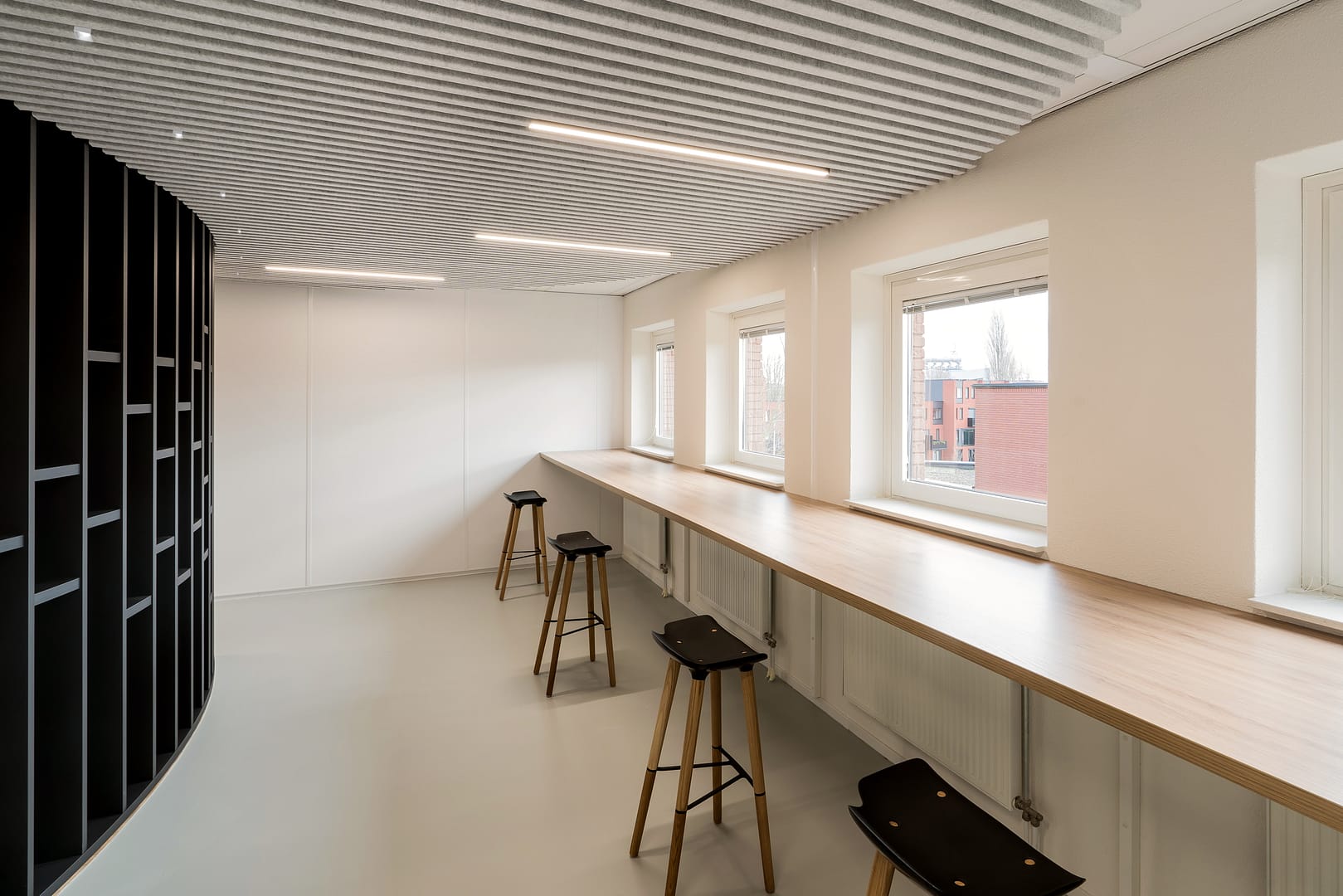 De L14-20 is uitgevoerd met een speciale lens reflector combinatie, dit zorgt voor een mooie gelijkmatigheid en lage verbindingswaarde wat hem uitermate geschikt maakt voor kantoor omgevingen. Armatuurbehuizing van aluminium extrusie profiel, zwart geanodiseerd. Zwarte kunststof eindkappen met subtiel LOERAKKER logo. Één meter aderig snoer met wago mini connector zodat de armaturen plug & play aangesloten kunnen worden aan één van onze drivers. Separaat te bestellen ophangbeugels afhankelijk van het type plafond. Keuze uit twee type driver systemen, centraal of decentraal. —Tekst gaat onder de afbeeldingen verder.—