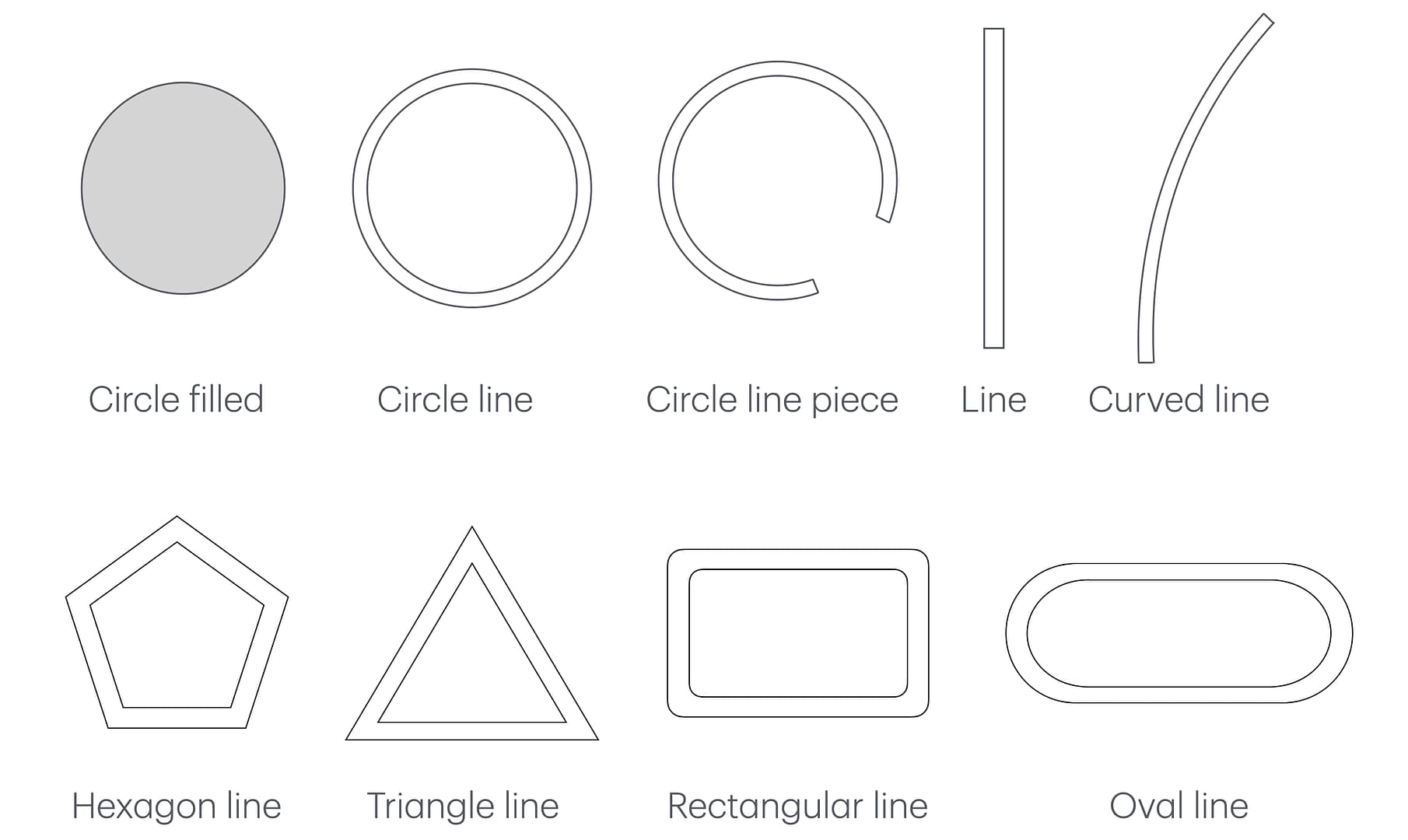 Er kan gekozen worden uit onderstaande vormen. Daarnaast kan de totale afmeting, breedte, hoogte en eventueel afgeronde hoeken gekozen worden. Geef je voorkeuren aan ons door en wij beoordelen wat maakbaar is.