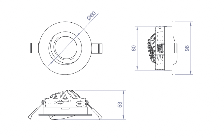 Met een inbouwmaat van 80mm en een inbouwdiepte van 55m, kan deze spot bijna overal probleemloos worden toegepast.