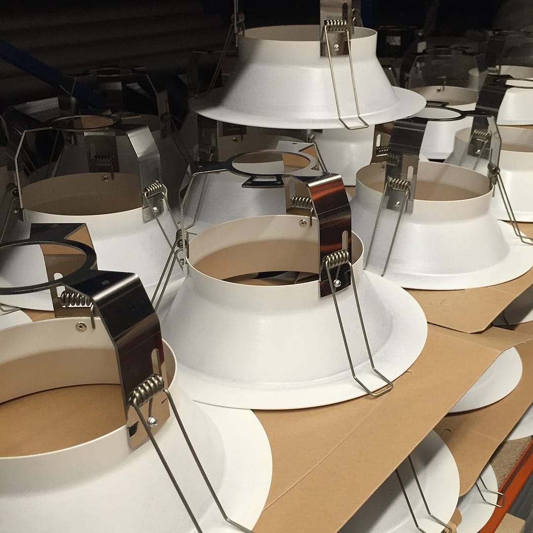 De downlights assembleren we op order. Dat betekent dat alles per order gekozen kan worden: lichtkleur, lumenoutput, uitstralingshoek en zelfs de kleur van de flens. Mét behoud van de korte levertijd van 2- 3 weken.