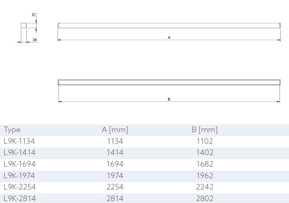 Aan de bovenkant zorgen enkele ledprinten met kunststof afscherming voor het verlichten van het plafond. Dit zorgt voor een mooie homogene lichtspreiding. Het armatuur is vervaardigd van aluminium en blank of zwart geanodiseerd. De perfect gefreesde eindkappen zorgen voor een hoogwaardige afwerking. Dit armatuur is zowel als pendel (L9-P) uitvoering te verkrijgen als met wandmontage beugels (L9-K) en als Trackrail uitvoering (L9-TR). De voet met geïntegreerde driver is van het merk Philips en kan op verschillende lichtsterktes worden ingesteld.