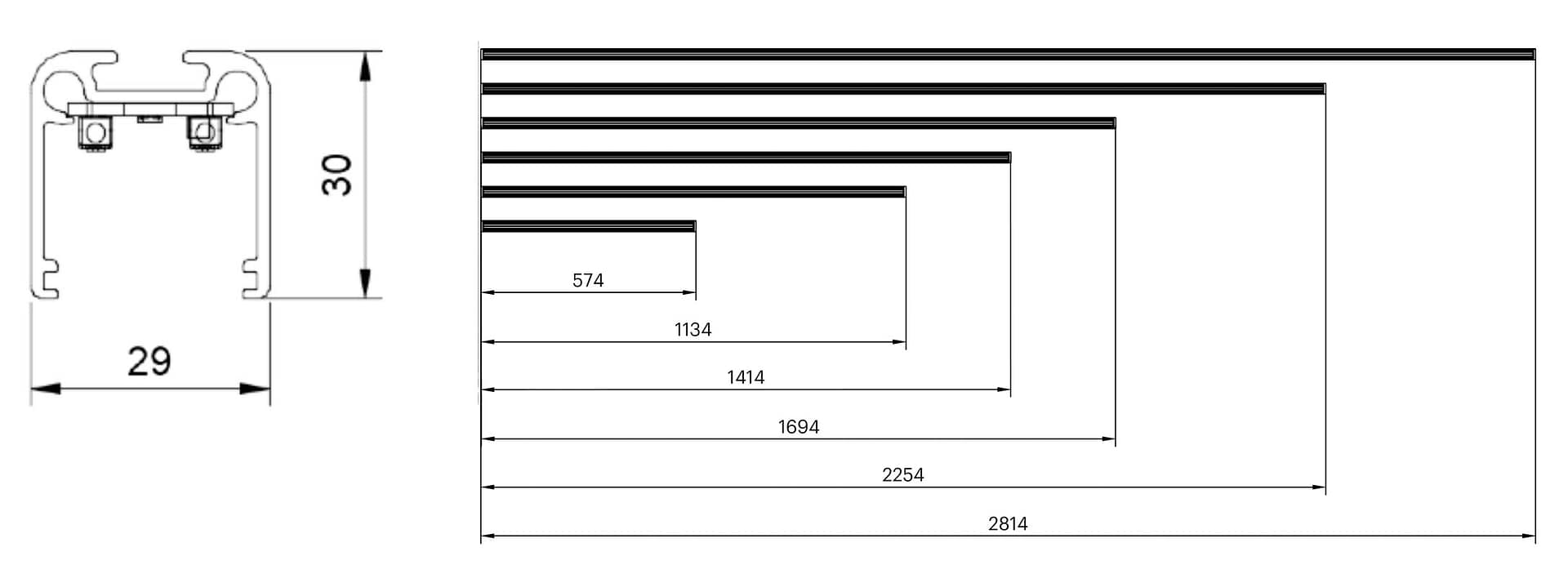 De reflector variant is beschikbaar in de afmetingen 574, 1134 en 1414mm.